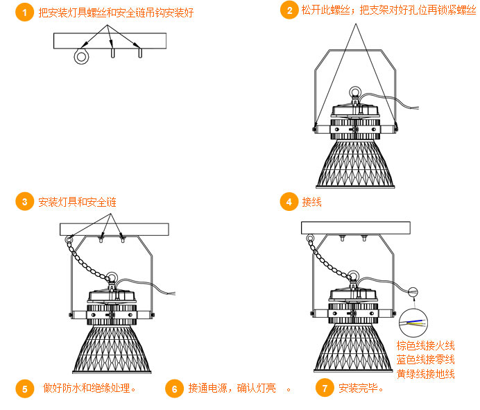 3.連接電源時,要注意輸入電壓和燈具適配,電源線接好后,做好防水和絕緣處理。