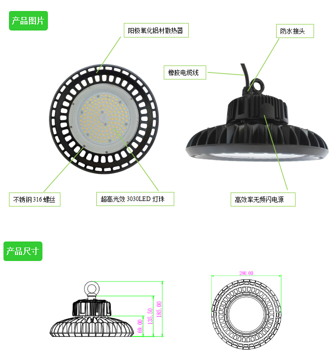 3、散熱體表面進行陽極氧化防腐處理,接線盒內置防雷器,采用防水膠條,防水接頭,防水、防塵性能佳,反光罩加高光透鏡專業