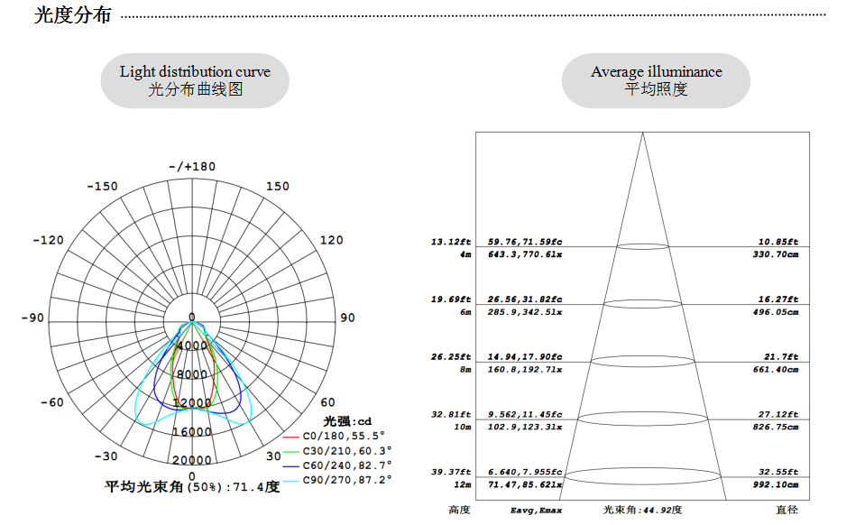 陽極氧化拉伸散熱器;PC光源密封罩;多顆貼片式大功率3030燈珠;高效率恒流源;光效完全滿足DLC4.0認證標準。