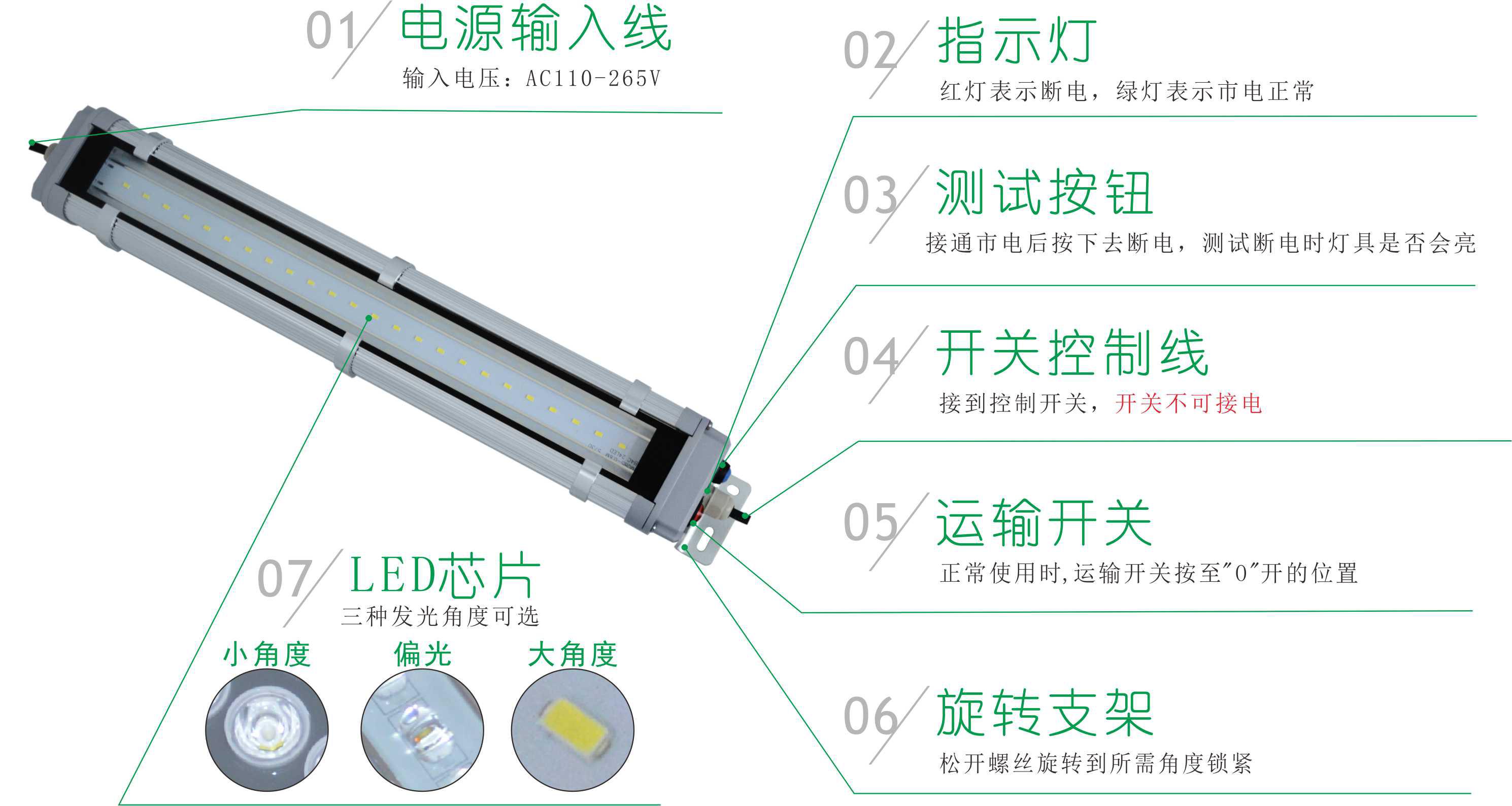 本產品自帶電源獨立控制,與靠控制中心操作的應急燈相比,更加安全可靠;首先燈具安裝完成后打開運輸開關至“O”,當接通市電時,蓄電池進行充電,并在充滿后自動停止充電;通過開關控制切換燈具“點亮”“熄滅”狀態,當市電停電時開關控制不起作用,燈具零時間轉換為蓄電池自動“點亮”燈具;